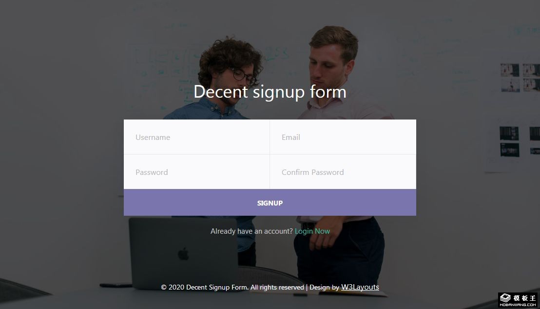扁平注册框响应式网页模板。