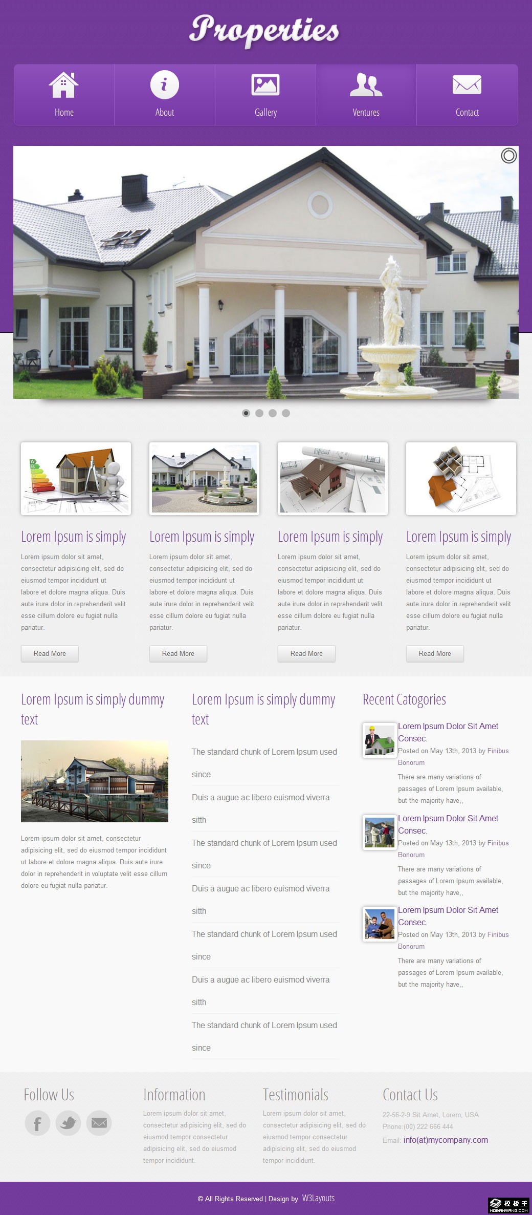 紫色别墅建筑设计网页模板。
