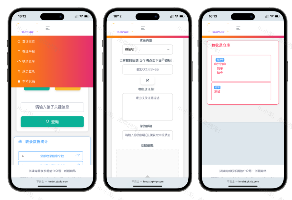 一款开源的黑名单举报查询系统,系统支持多种方式录入黑名单信息,可手动添加黑名单类型,适用于防诈骗查查询