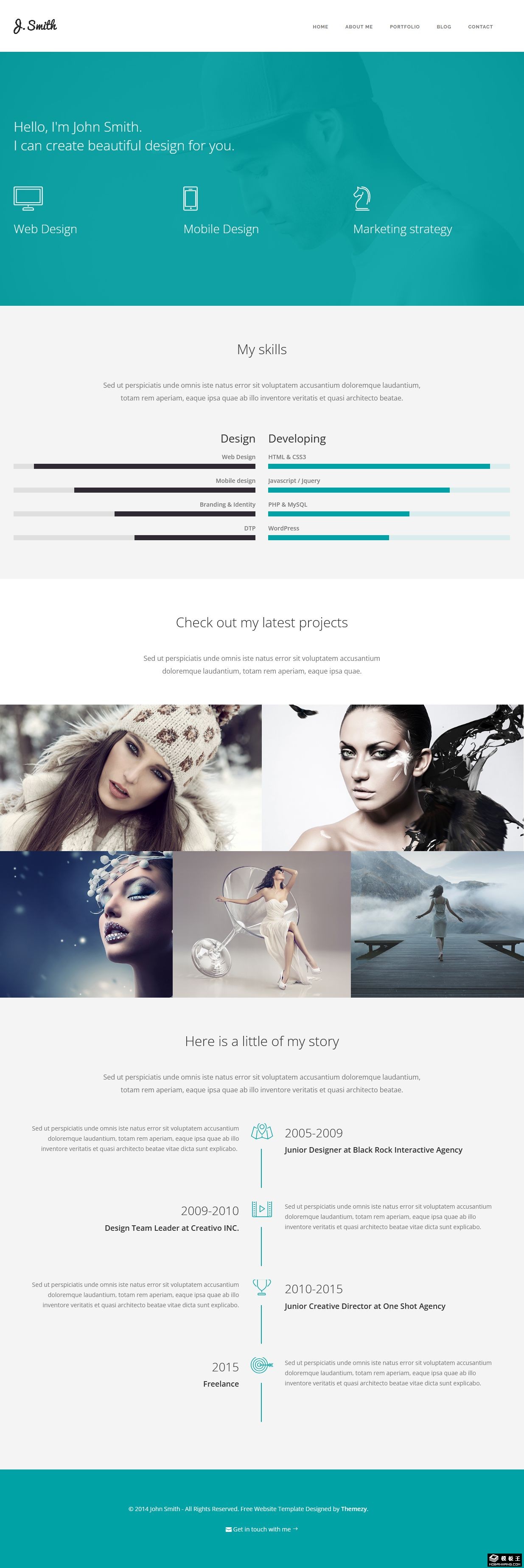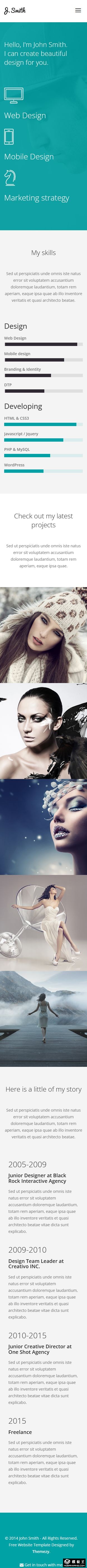 绿色设计师简历响应式网页模板。