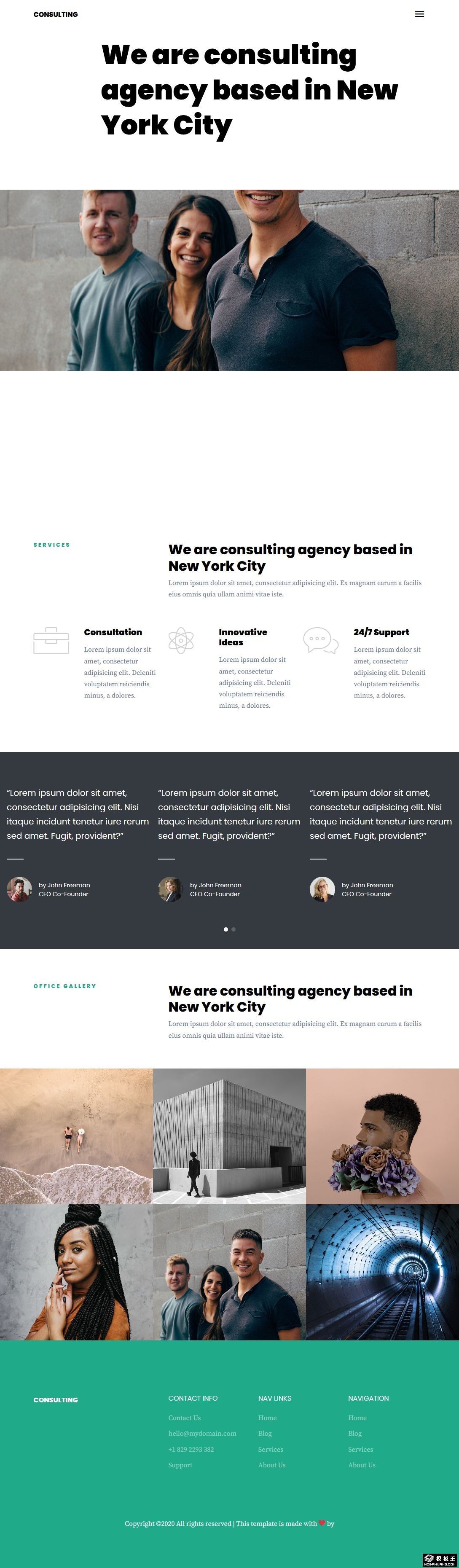 咨询机构团队响应式网页模板。