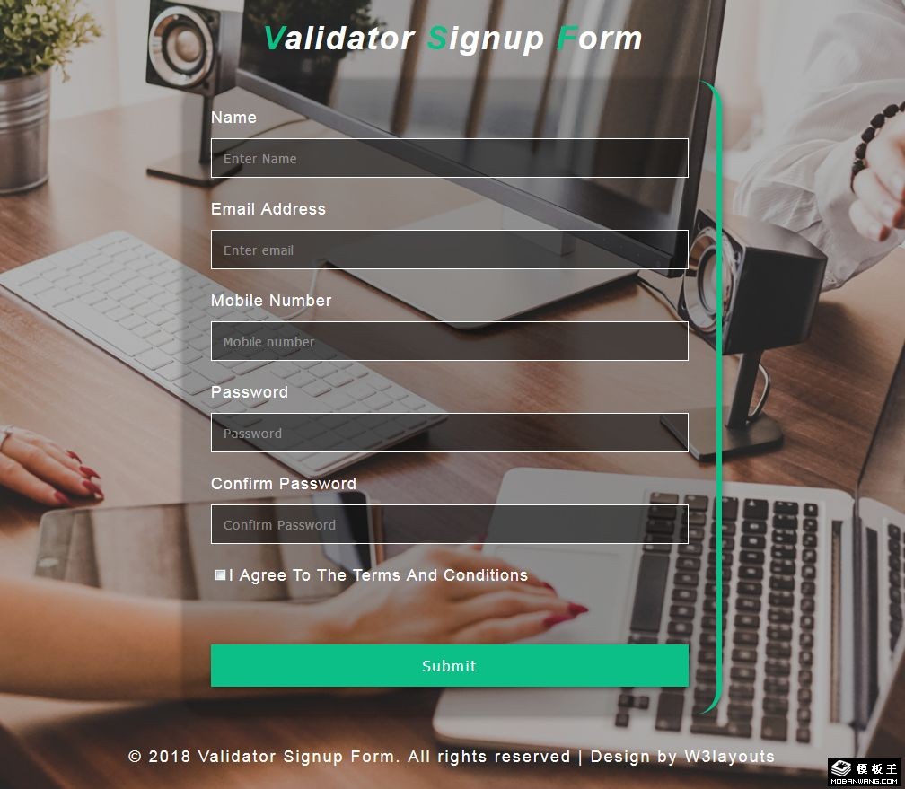 信息登记验证表单响应式网页模板。