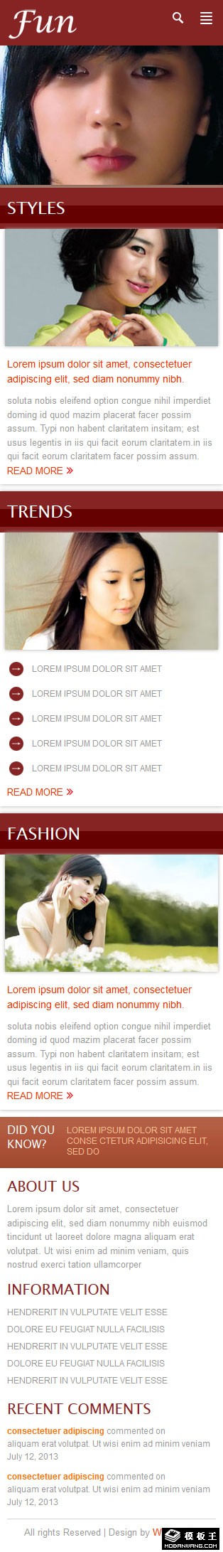 闪烁暗红娱乐信息网页模板。