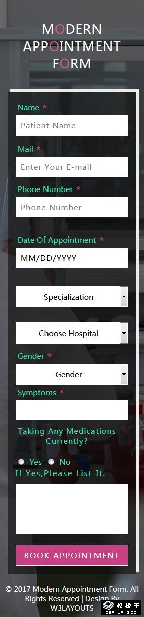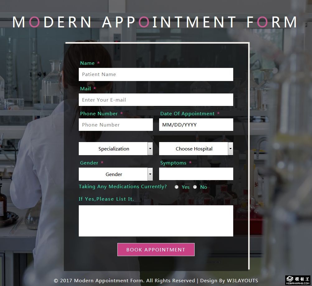 医学化验预约表单响应式网页模板。