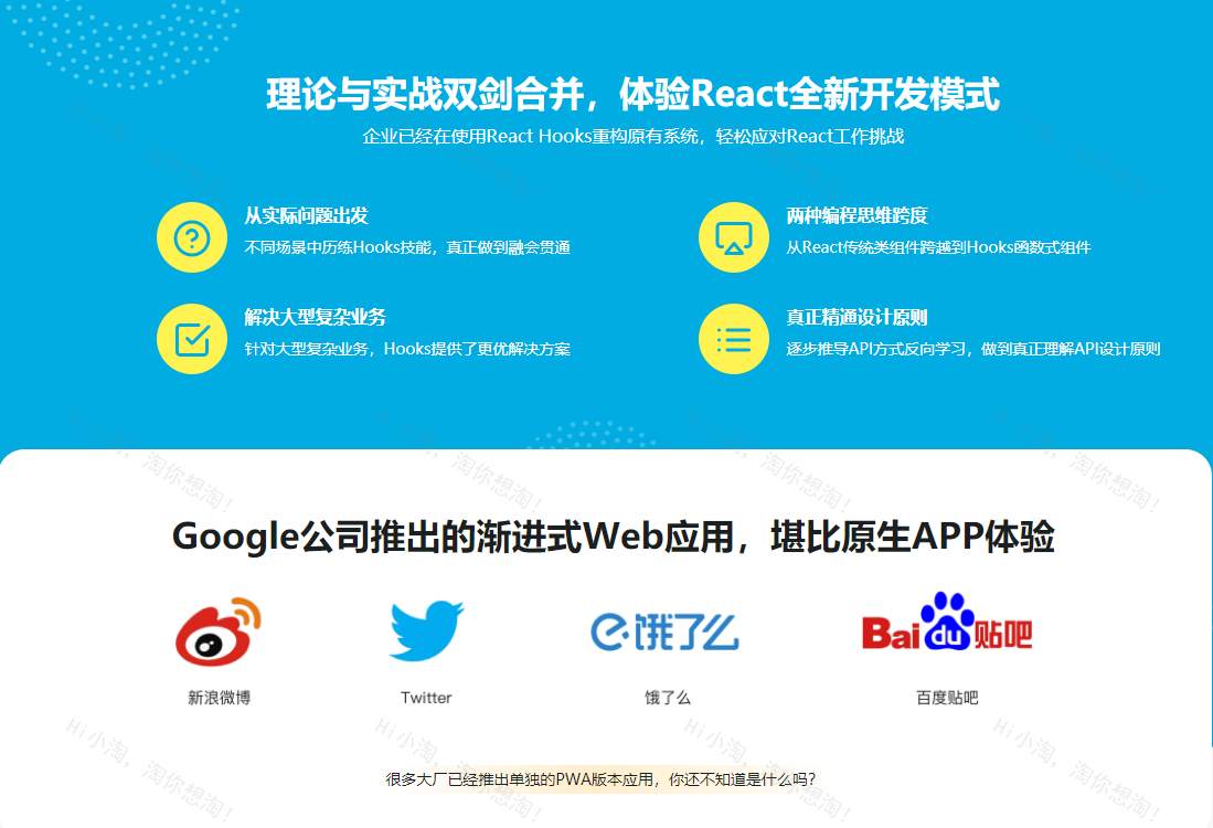 课程先带你细数最近一年来React的新特性,如Hooks、Redux API,让你从头理解Hooks对传统React开发方式的革命性改变。再利用所学知识,在不同场景下,重构旅游电商网站火车票系统,并使用PWA实现堪比原生APP体验的应用。