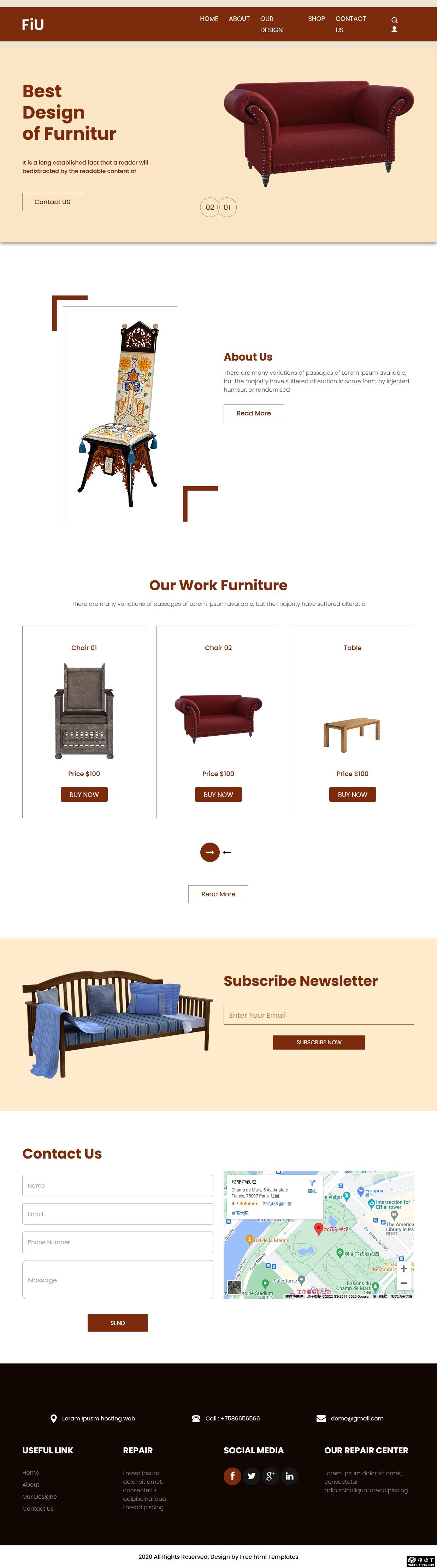 暗红古典家居响应式网页模板。