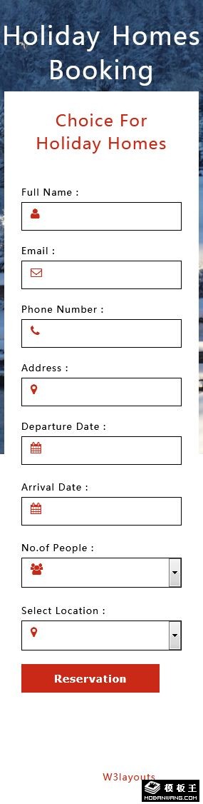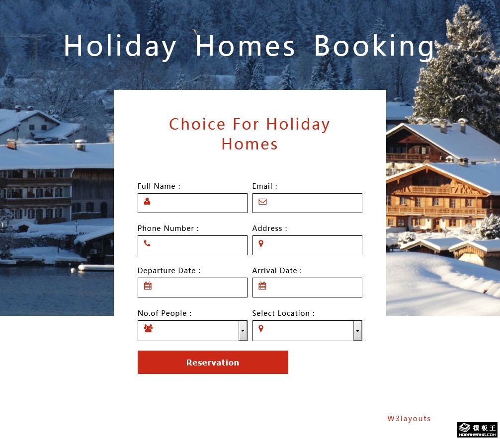 度假住宿预订表单网页模板。