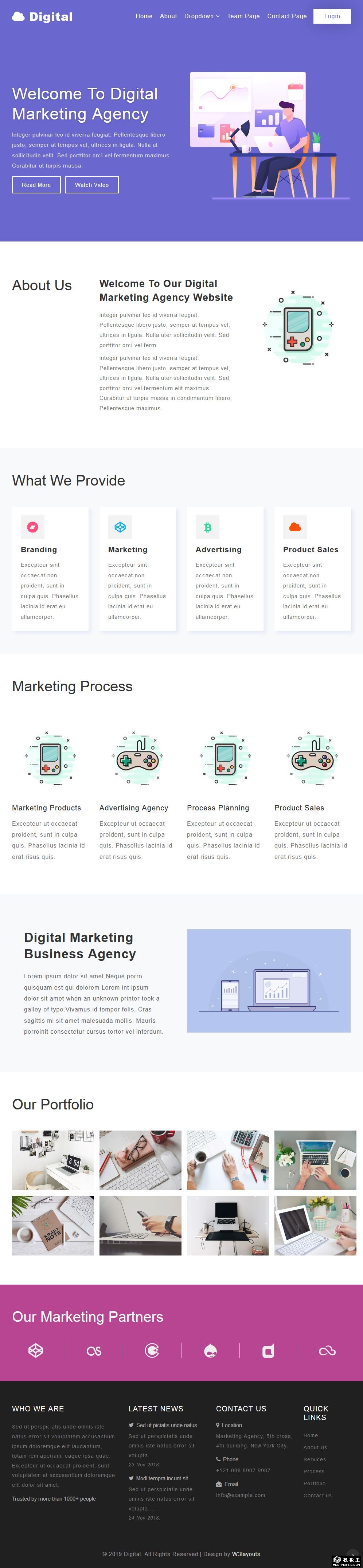 紫色数字营销机构响应式网页模板。