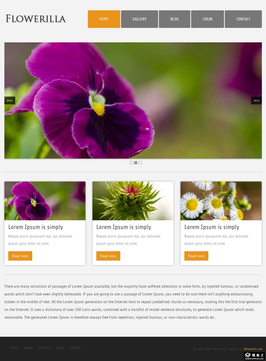 花朵图片展示网页模板。