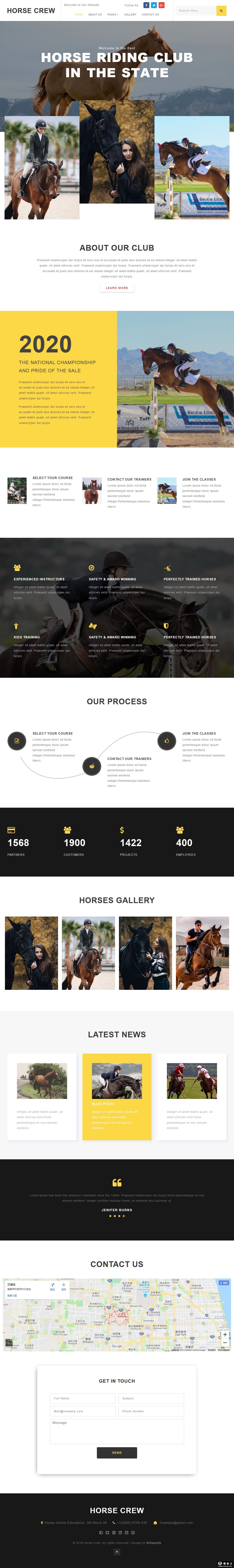 马术俱乐部动态响应式网页模板。