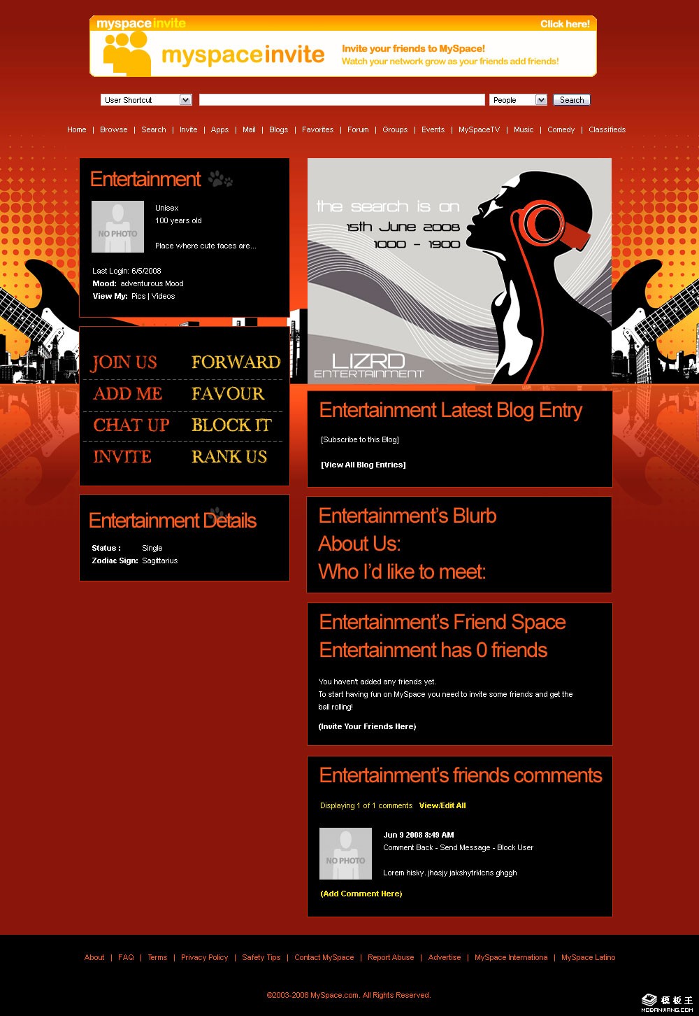 音乐节目blog网页模板。
