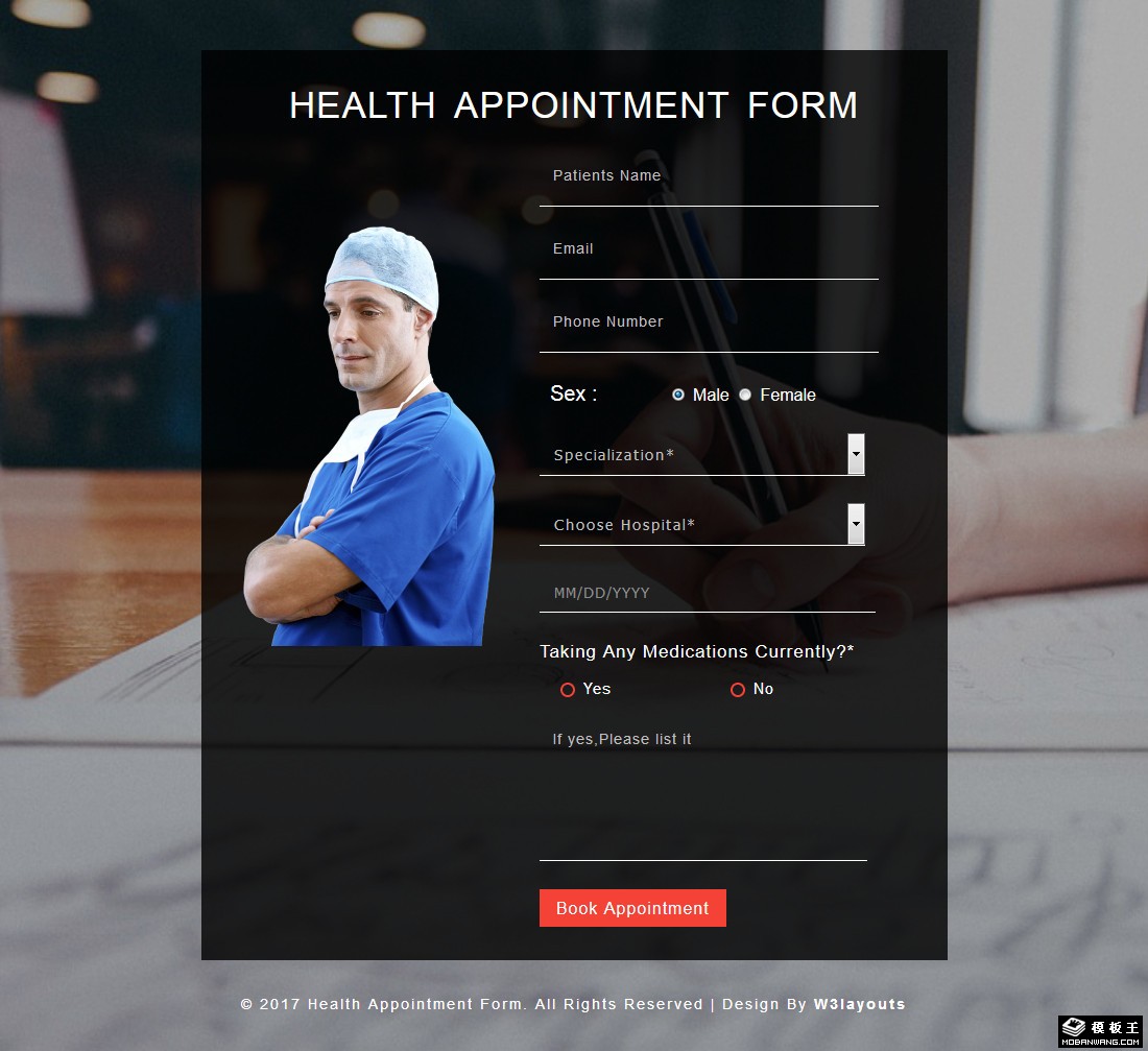 医院预约表单响应式网页模板。