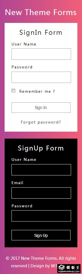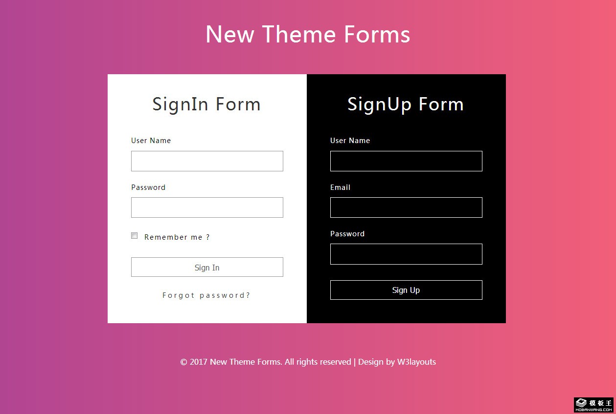 新主题黑白登录注册框响应式网页模板。