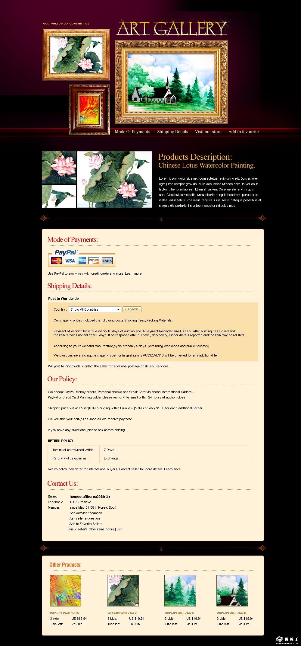 暗红画框销售介绍网页模板。