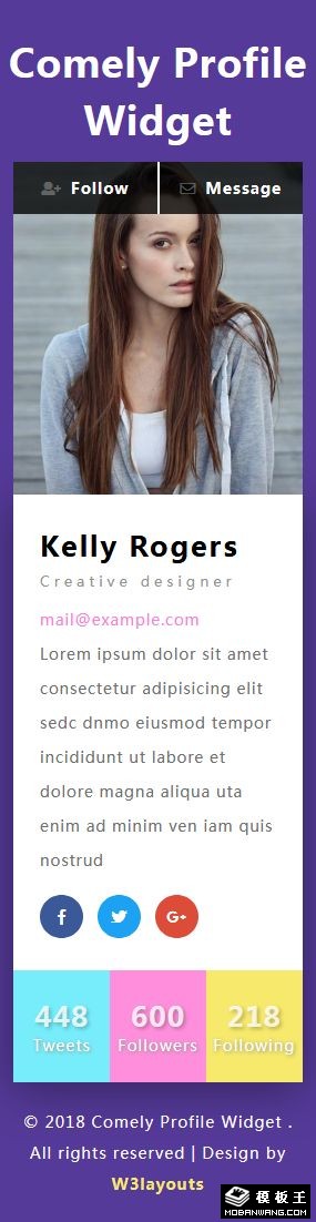 社交用户展示组件响应式网页模板。