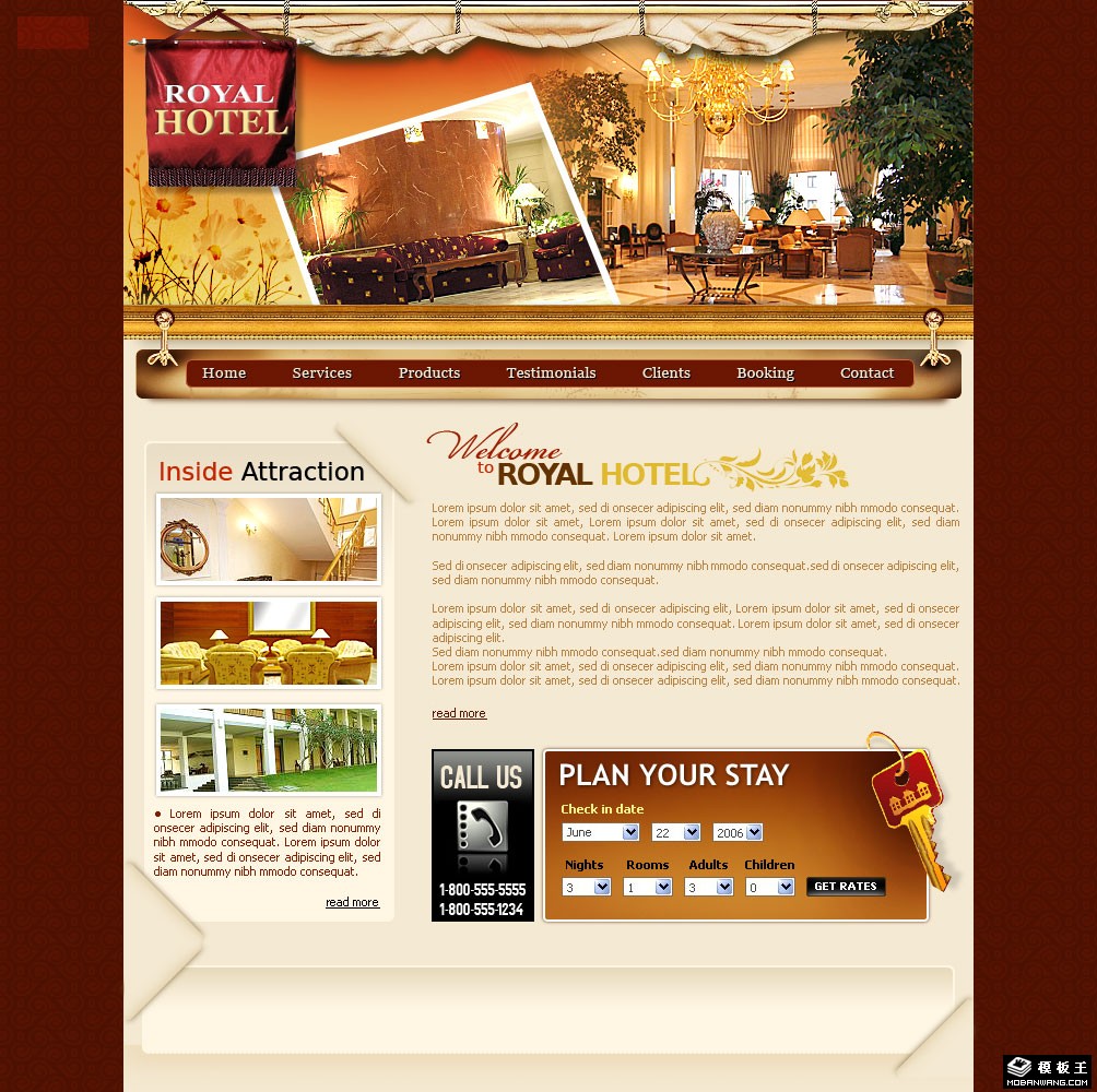 五星级皇家酒店网站模板。
