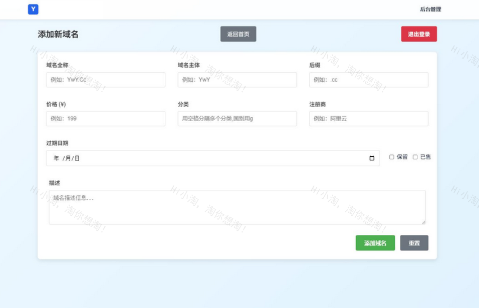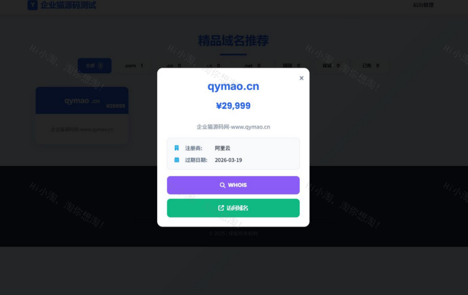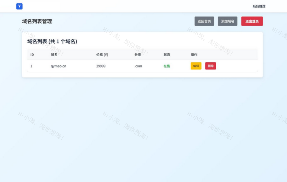 域名出售系统 带简易后台管理的米表系统 自适应页面