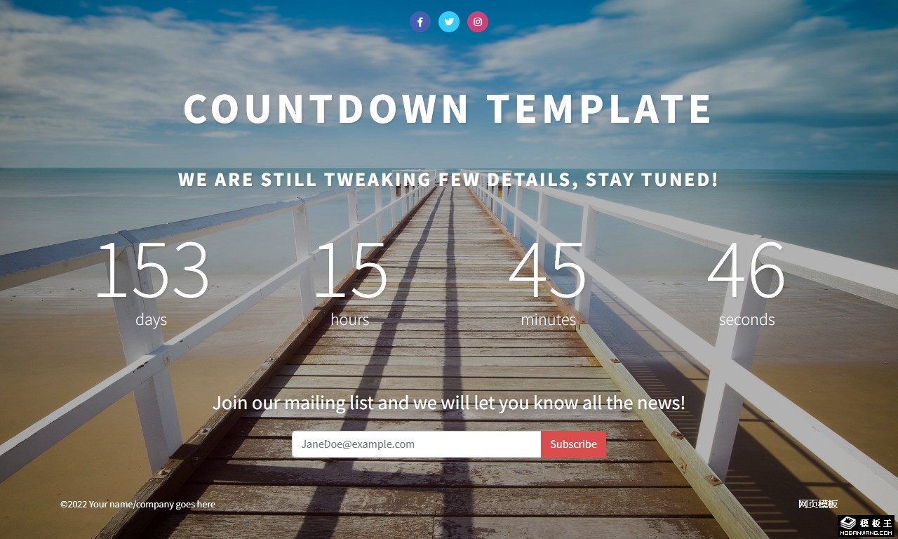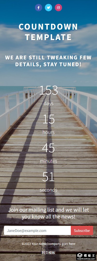 此页面为带全屏背景图的倒计时模板,并附有邮件订阅功能。
