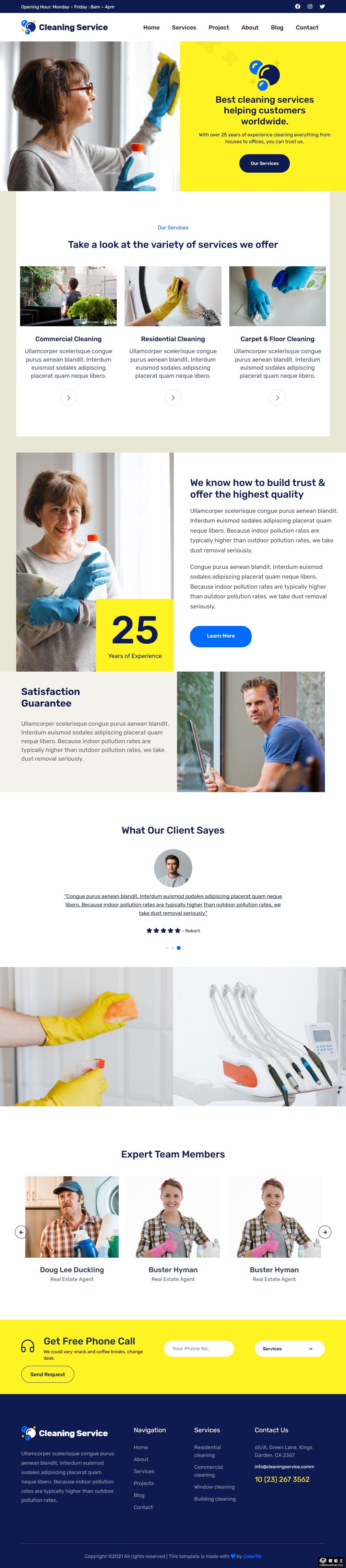 专业清洁服务公司响应式网页模板。