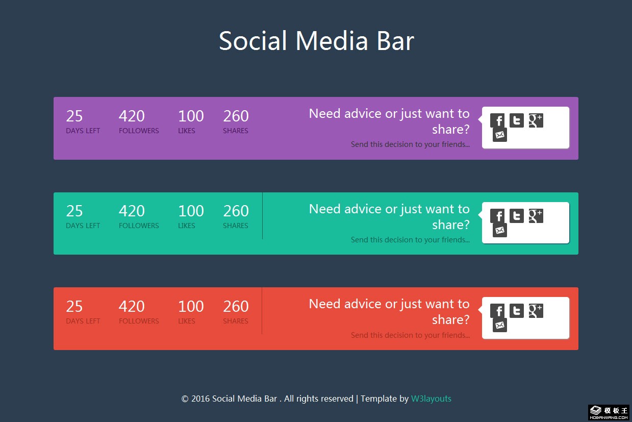 社交媒体数据组件网页模板。