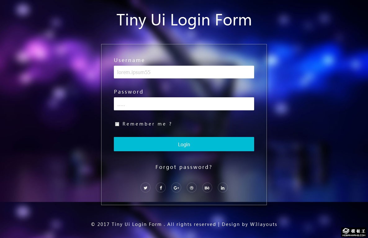 璀璨登录框网页模板。